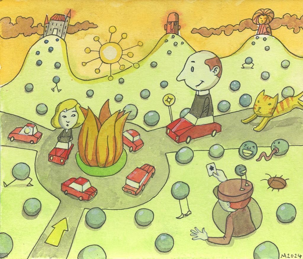 Weiterhin entstehen immer wieder freie Aquarelle. Hier zu sehen sind „Bommels“, „Go get Them!“ und „Shining at the Sea“