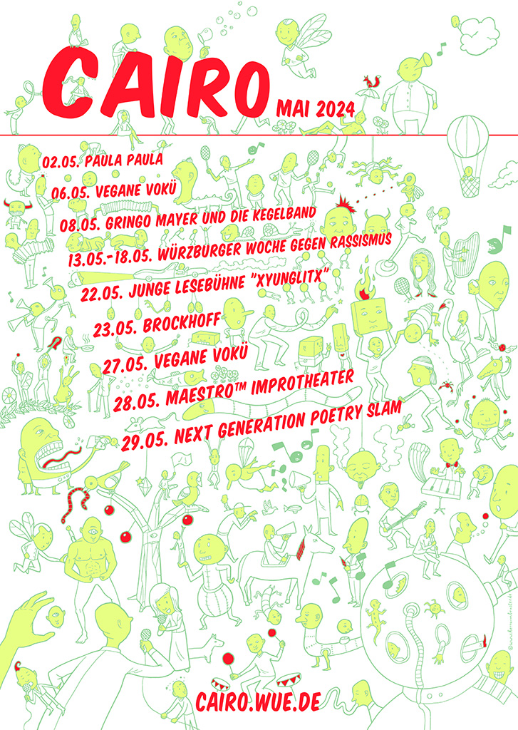 Ich hatte wieder die Ehre, das Plakat für das Jugendkulturhaus Cairo gestalten zu dürfen. Überall in der Stadt verteilt wies es auf die Veranstaltungen im Mai hin. Dieses Mal wurde es ein Wimmelbild mit jeder Menge Glatzköpfen...:)